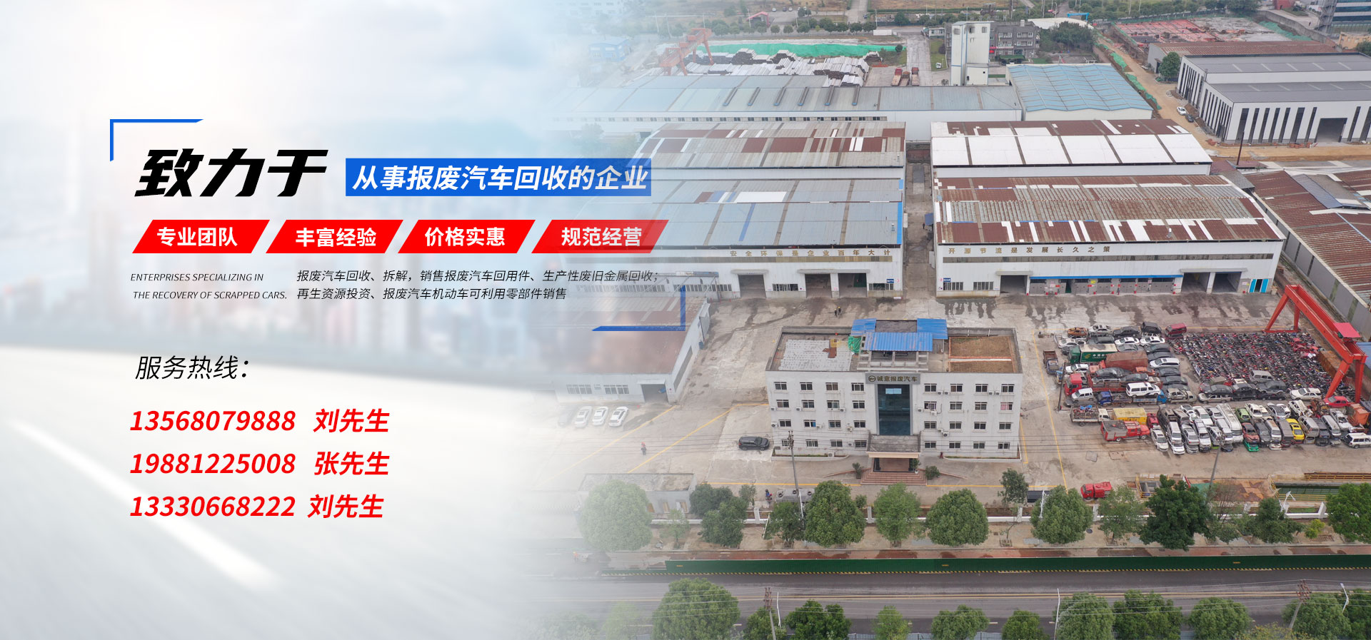 宜賓市誠(chéng)意報(bào)廢汽車(chē)回收有限公司成立于2005年7月,是專(zhuān)門(mén)從事報(bào)廢汽車(chē)回收的企業(yè)。收購(gòu)二手卡特、小松、住友、沃爾沃、神鋼、3字頭的挖機(jī)。報(bào)廢汽車(chē)回收、拆解,銷(xiāo)售報(bào)廢汽車(chē)回用件、生產(chǎn)性廢舊金屬回收;再生資源投資、報(bào)廢機(jī)動(dòng)車(chē)信息咨詢(xún)服務(wù)、報(bào)廢汽車(chē)機(jī)動(dòng)車(chē)可利用零部件銷(xiāo)售。特點(diǎn):報(bào)廢機(jī)動(dòng)車(chē)拆解基地及可利用零部件銷(xiāo)售基地。******:配件齊全,明碼標(biāo)價(jià),******實(shí)惠。品種:車(chē)型眾多,回用件種類(lèi)豐富:車(chē)胎、壓縮機(jī)、座椅、車(chē)門(mén)、玻璃等各類(lèi)車(chē)型及可利用零部件。公司經(jīng)營(yíng)地址占地10596平方米,其中硬化面積是6500平方米,擁有各類(lèi)符合拆解行業(yè)專(zhuān)業(yè)人員六人。公司新建廠區(qū)布局規(guī)范合理,車(chē)間寬暢明亮,擁有各類(lèi)專(zhuān)業(yè)機(jī)具十二臺(tái)套。